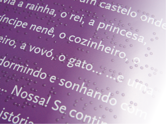 A proprietary and innovative Braille printing technology was developed by Graphic Designer Wanda Gomes, this printing technology is in patent process and only available in Brazil.